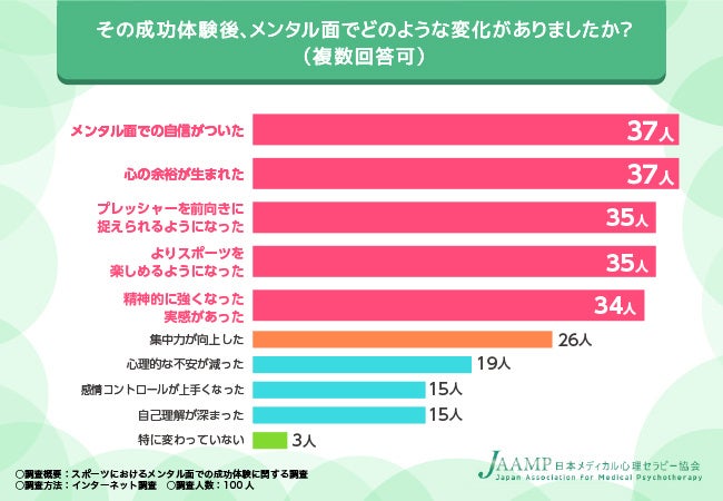 メンタル面で成功するには、日々の練習に勝るものはないと多くの方が感じているようです。それでは、成功体験を得られたあと、メンタル面の変化はあったのでしょうか。