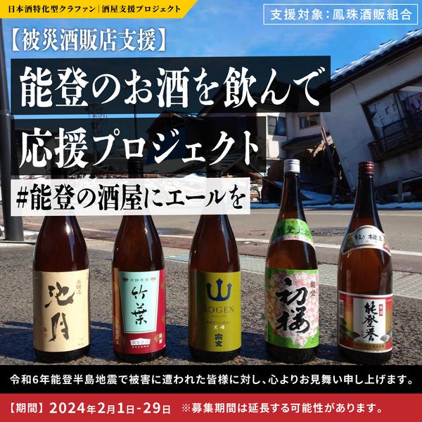 このプロジェクトは、令和6年に発生した能登半島地震で被害を受けた鳳珠(ほうす)酒販組合傘下の酒屋様を支援するためのものです。