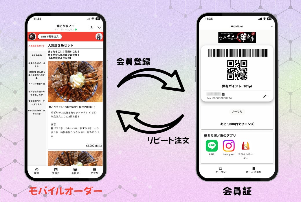 会員証やモバイルオーダー、予約受付などのサービスをアプリの追加ダウンロード・会員登録不要で「LINE」上で提供でき、重要なお知らせを無料で通知することが可能です。