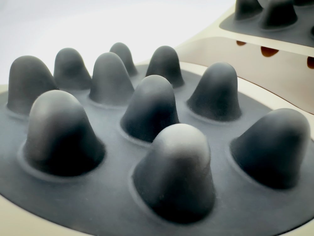 ソフトシリコン突起は約1cmの弾性があるスプリング式で、ちょうどいい力加減の指圧を実現しました。