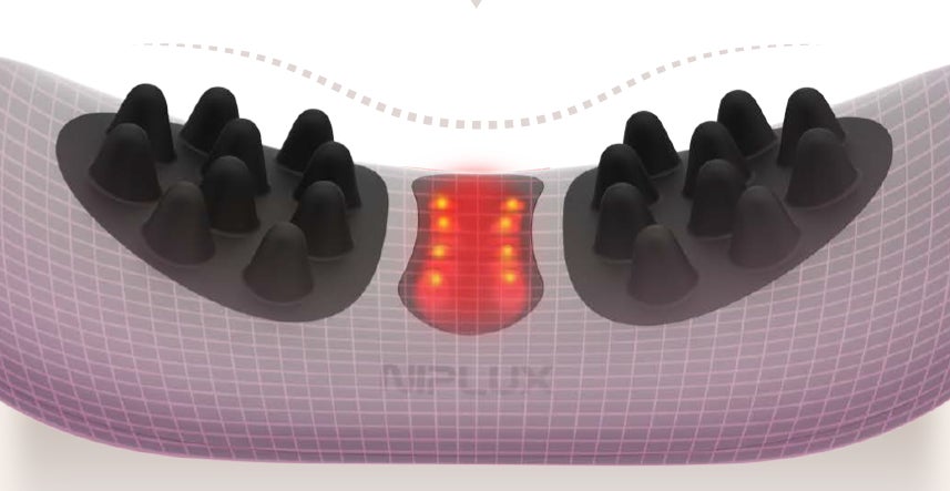 さらに、筋肉の緊張をゆるめる温熱機能やNIPLUX独自のEMS低周波、腰回りをダイレクトに刺激する指圧機能を搭載することで、気になる腰の違和感をリフレッシュする業界初*の指圧ストレッチャーを開発いたしました。