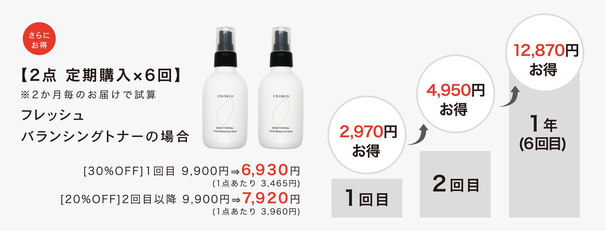 同一商品を2点定期購入される場合、2回目以降の価格は20%OFFとなります。