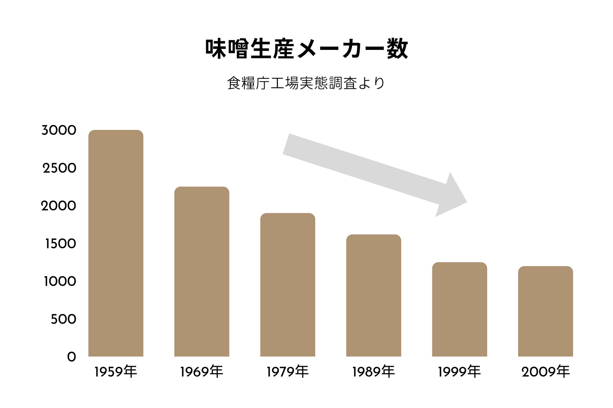 しかし、国内の味噌市場は年々縮小傾向にあり、味噌蔵の廃業が相次いでいます。国内全体では直近35年で400以上の味噌蔵が廃業したと言われています。