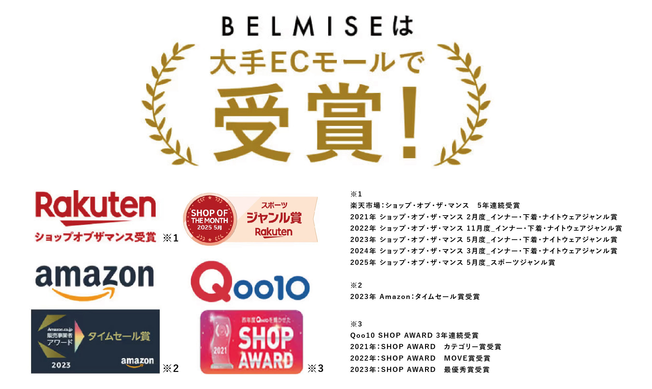 2021年 ショップ・オブ・ザ・マンス 2月度_インナー・下着・ナイトウェアジャンル賞 2022年 ショップ・オブ・ザ・マンス 11月度_インナー・下着・ナイトウェアジャンル賞2023年 ショップ・オブ・ザ・マンス 5月度_インナー・下着・ナイトウェアジャンル賞2024年 ショップ・オブ・ザ・マンス 3月度_インナー・下着・ナイトウェアジャンル賞2025年 ショップ・オブ・ザ・マンス 5月度_スポーツジャンル賞