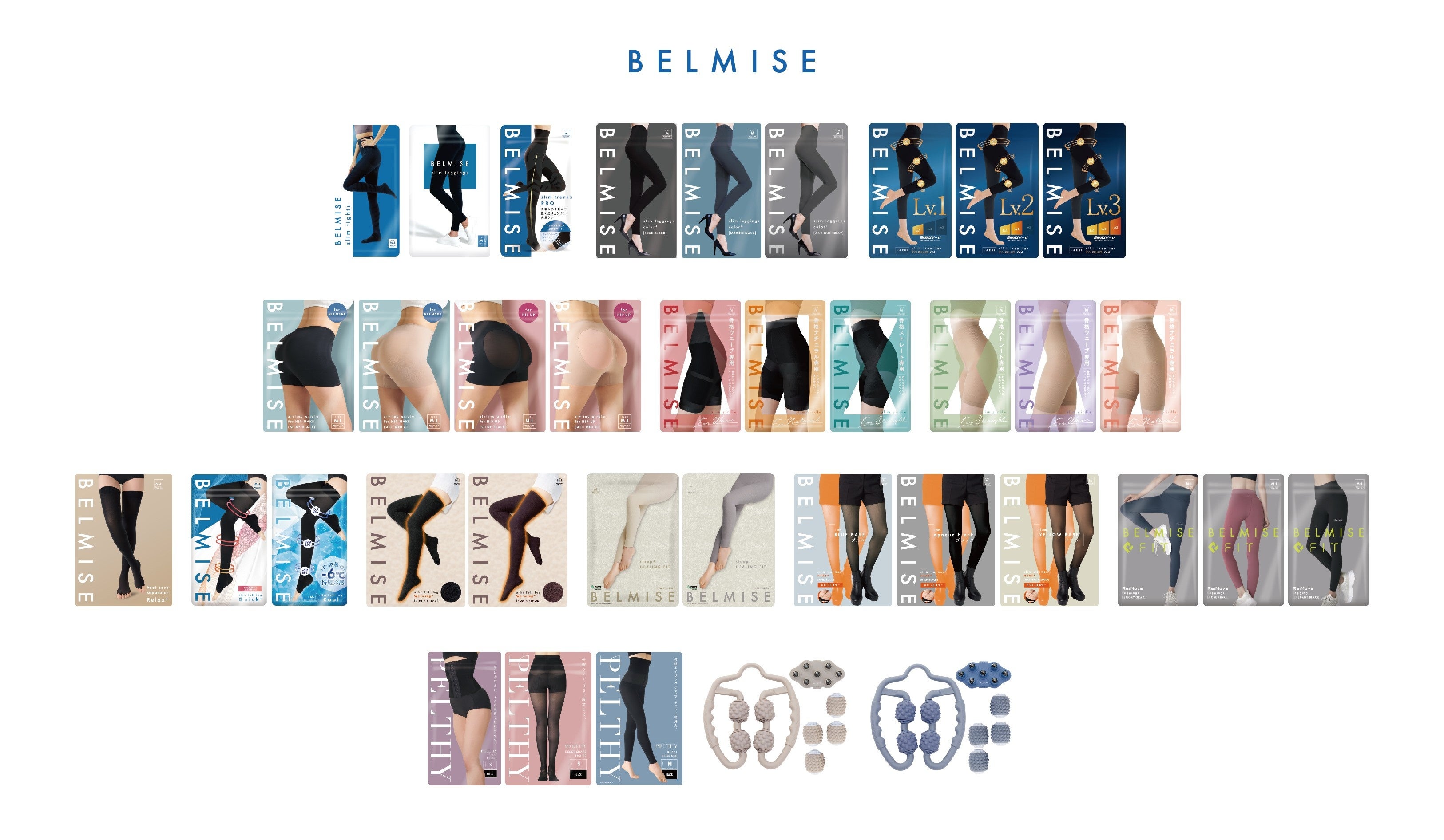 ベルミスは現在、レギンスにとどまらず、ガードルやコルセット、ソックスタイプなど、シリーズ全体で21商品を展開しています。