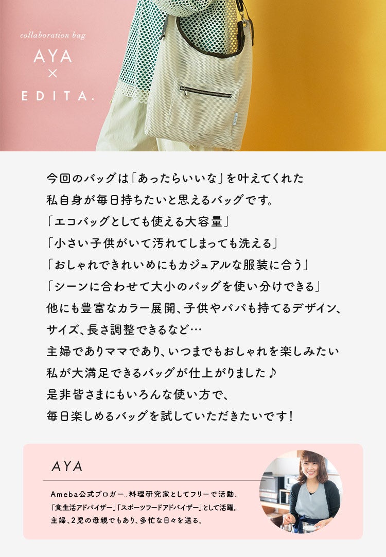 「あったらいいな」を形に!多機能×洗濯機で洗える4Wayショルダーバッグが待望の再販売 – AmebaブロガーAYAさんとEDITA.(エディータ)が初のコラボレーション。