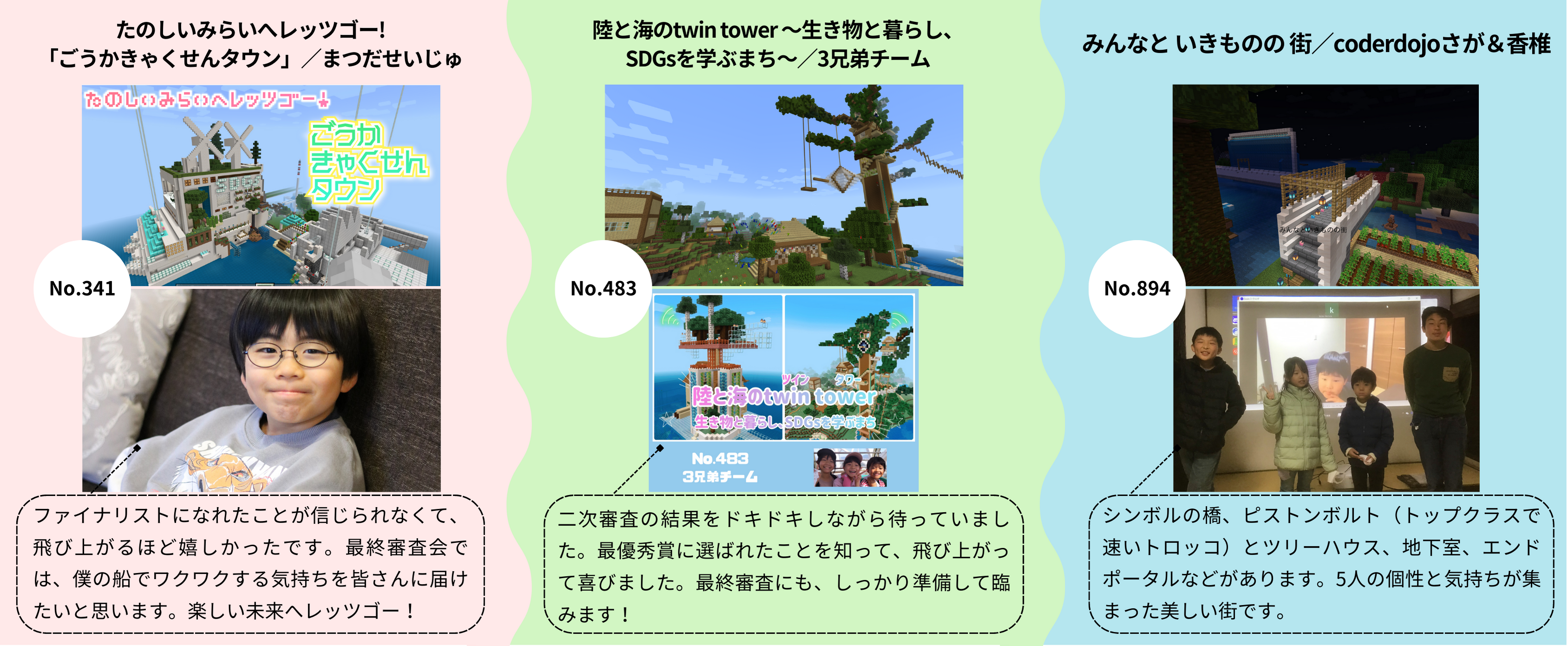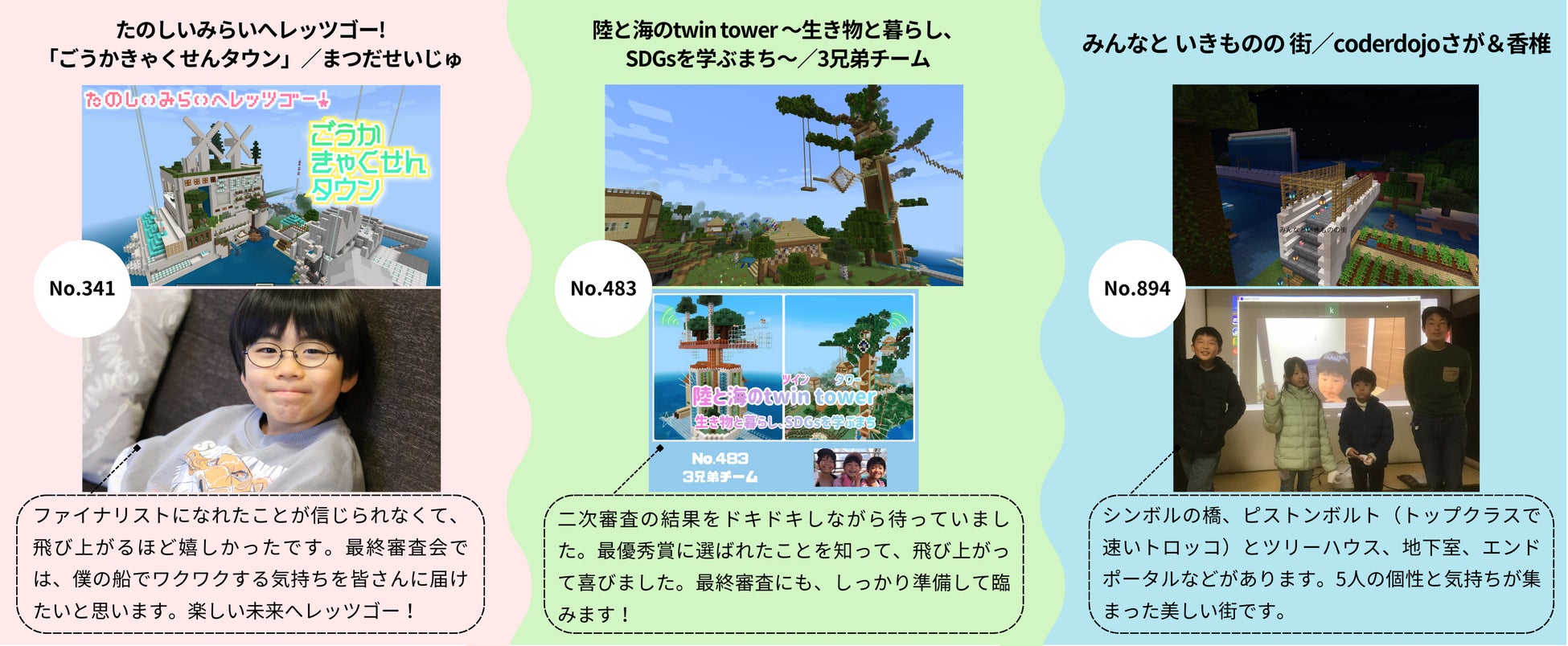 教育版マインクラフトを使った作品コンテスト「Minecraftカップ2022全国大会」のファイナリスト39作品が決定。最終審査会は都内で行われ、各アワードが決まります。