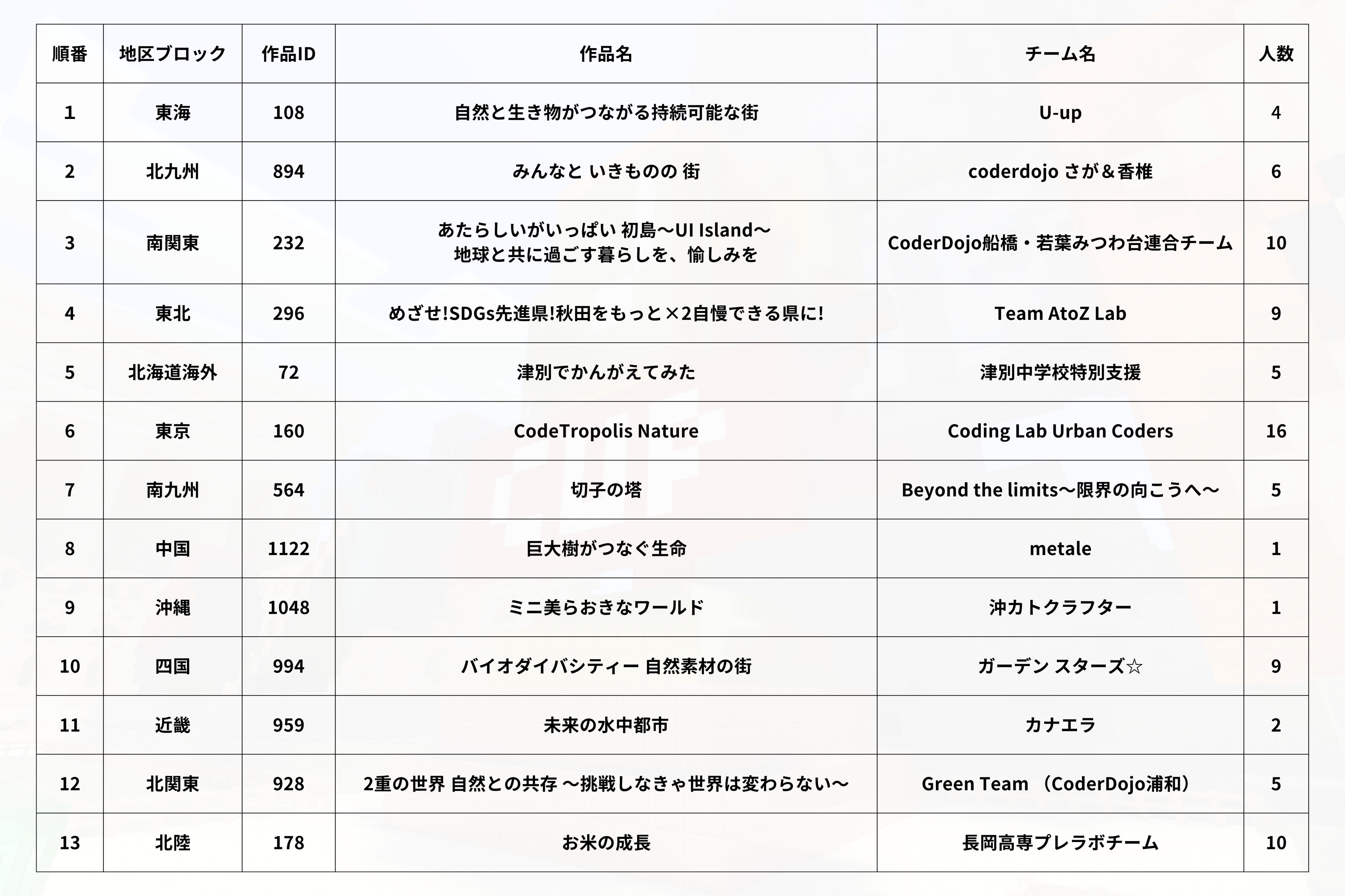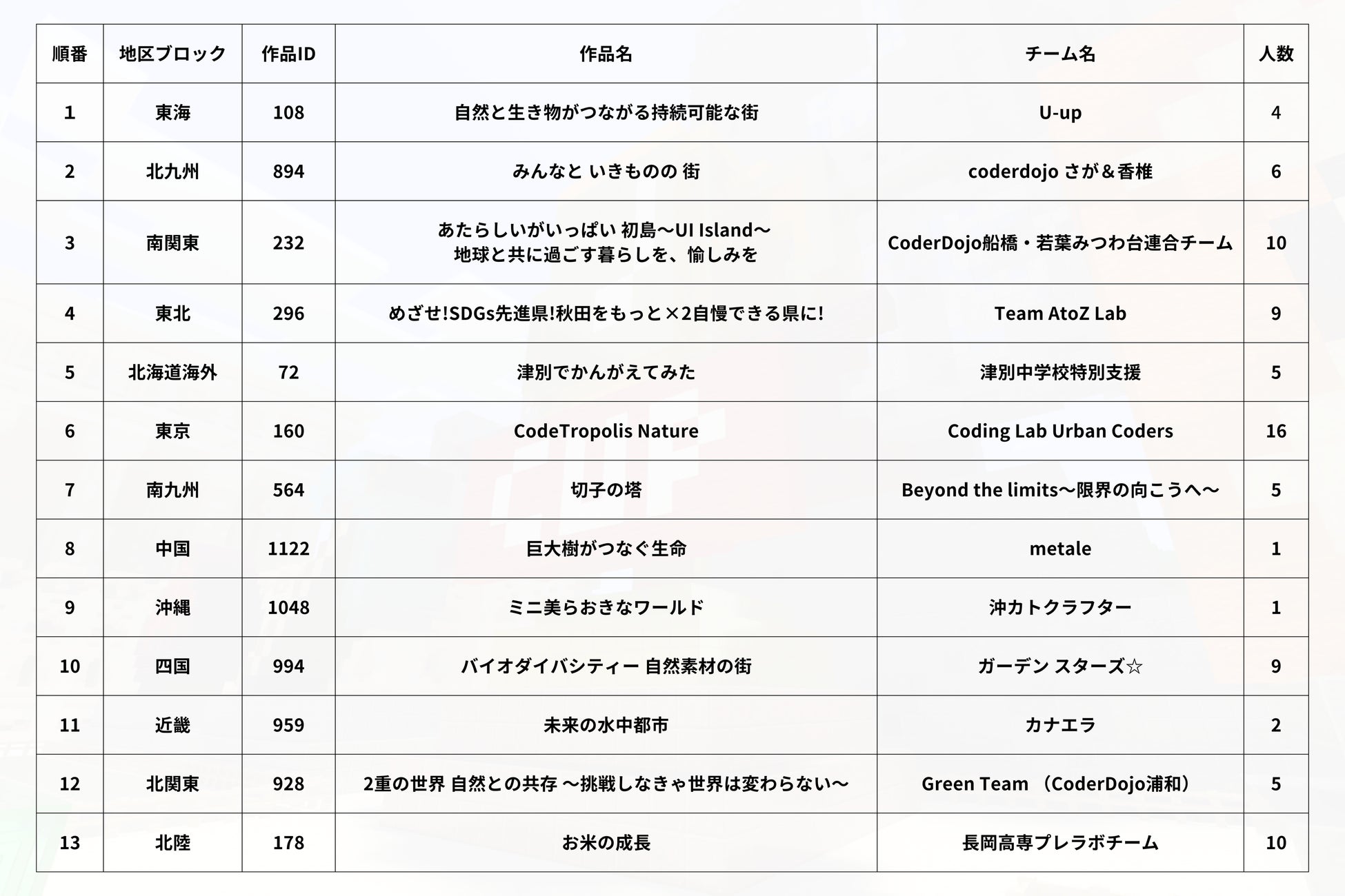 | Microsoft賞 教育版マインクラフトを通じて、自分たちの可能性を大きく伸ばすことができたチームに贈られる賞 |