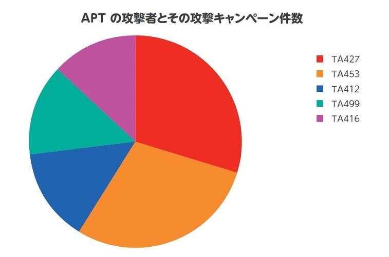 金銭目的のサイバー犯罪が脅威の大部分を占める一方で、異常値的なAPT(Advanced Persistent Threat)攻撃が1回でもあれば、大きな影響を与える可能性がある: 一般企業や政府のスパイ活動を行うロシア系のAPT攻撃グループであるTA471による大規模攻撃キャンペーンは、APTメッセージの件数で第1位になりました。また、中国国家と結びついたAPTの攻撃者であるTA416は、最もアクティブなグループに属しました。特に、TA416による新たな重要攻撃キャンペーンは、ロシアとウクライナ戦争の開始と同時に起こり、難民・移民サービスに関連したヨーロッパの外交機関を標的としていました。