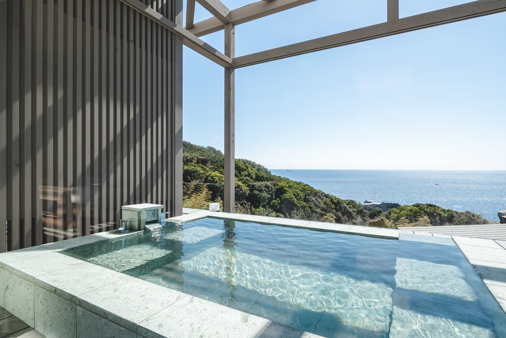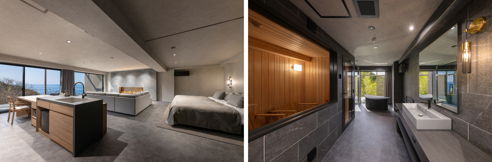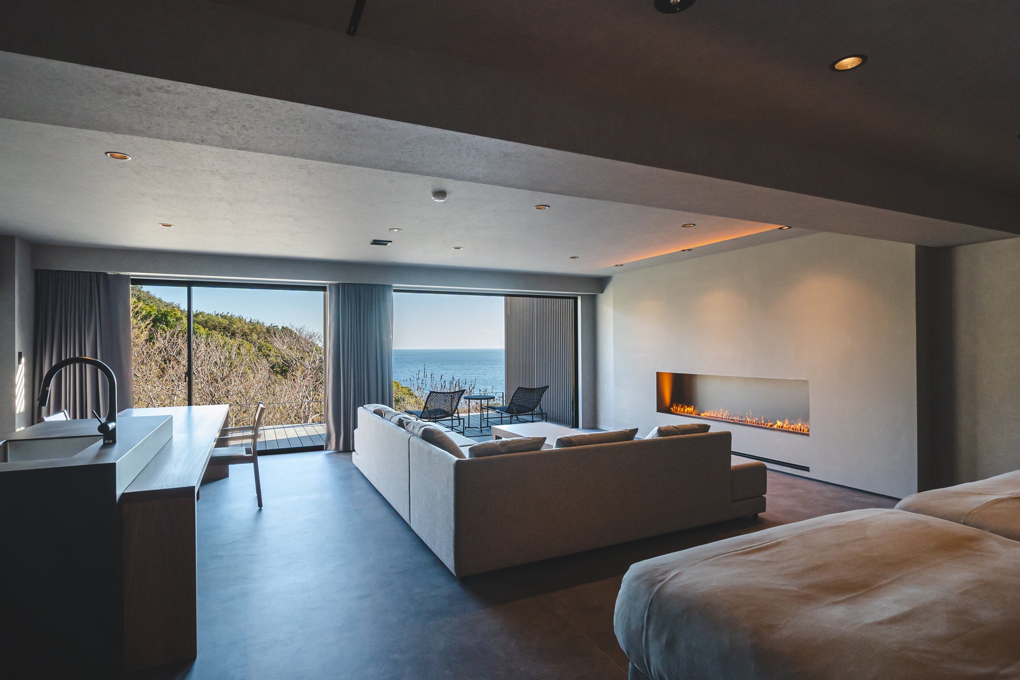 また、目の前に広がる圧倒的な海景を一番にご堪能いただきたく、窓の外に広がる色鮮やかな自然の色合いを邪魔することのないよう、室内は落ち着いた色合いで統一しています。