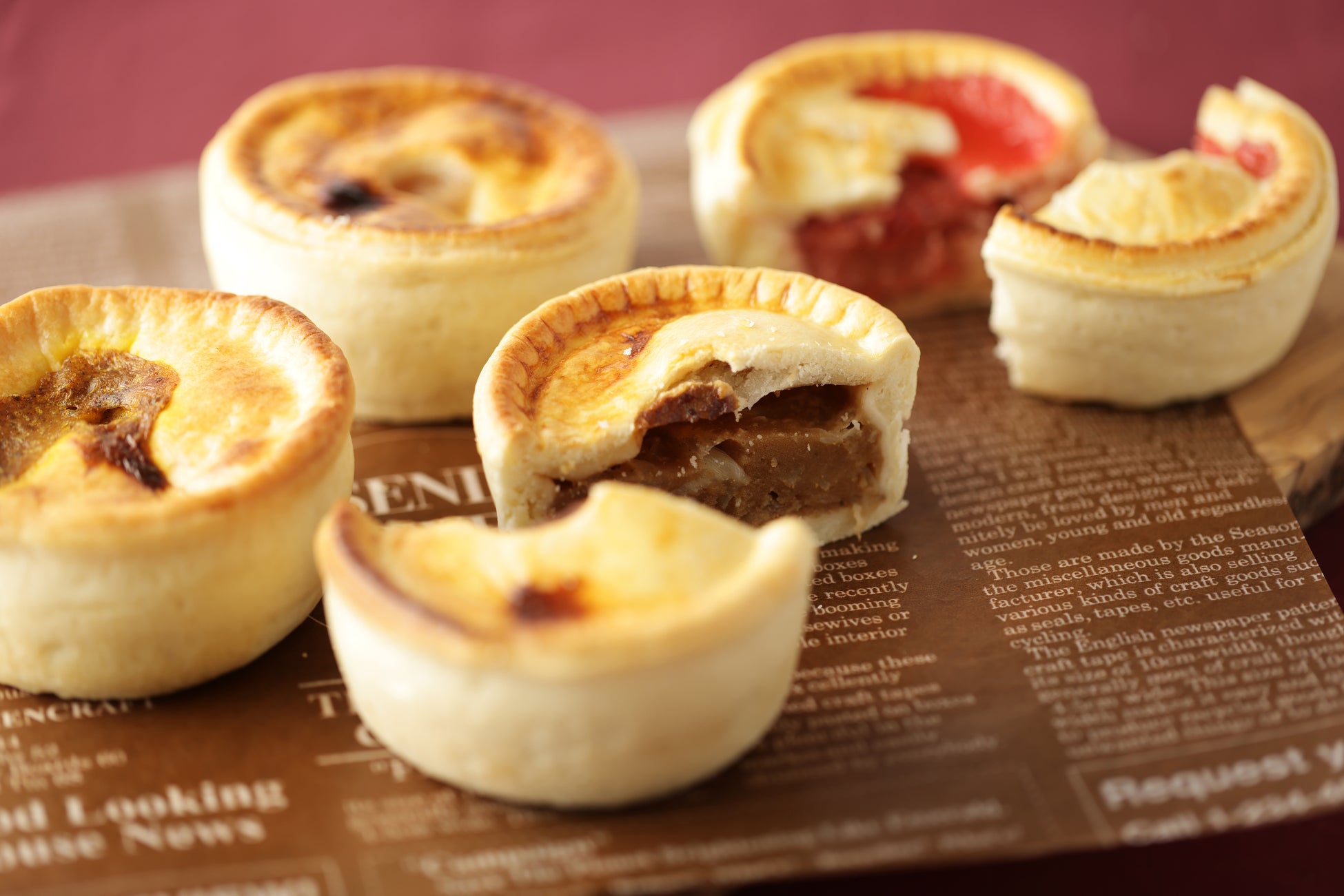 ジェリーズパイ4種(ビーフ&オニオン、カレー、アップルシナモン、ストロベリーカスタード)