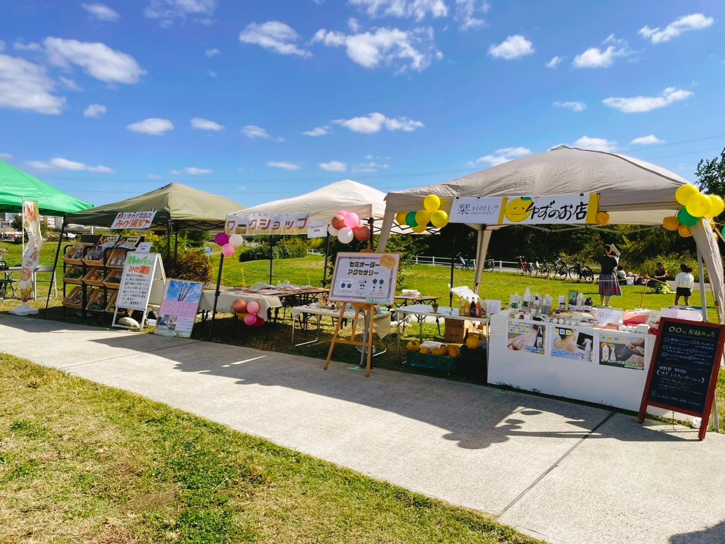 淀川河川公園で毎月開催される『淀川アーバンマルシェ』に、大阪・梅田の『オーガニックショップ栞〜siori〜』が初出店。大阪・箕面の実生ゆずを使ったスキンケア商品や京都・南丹市の農薬不使用の野菜を販売。