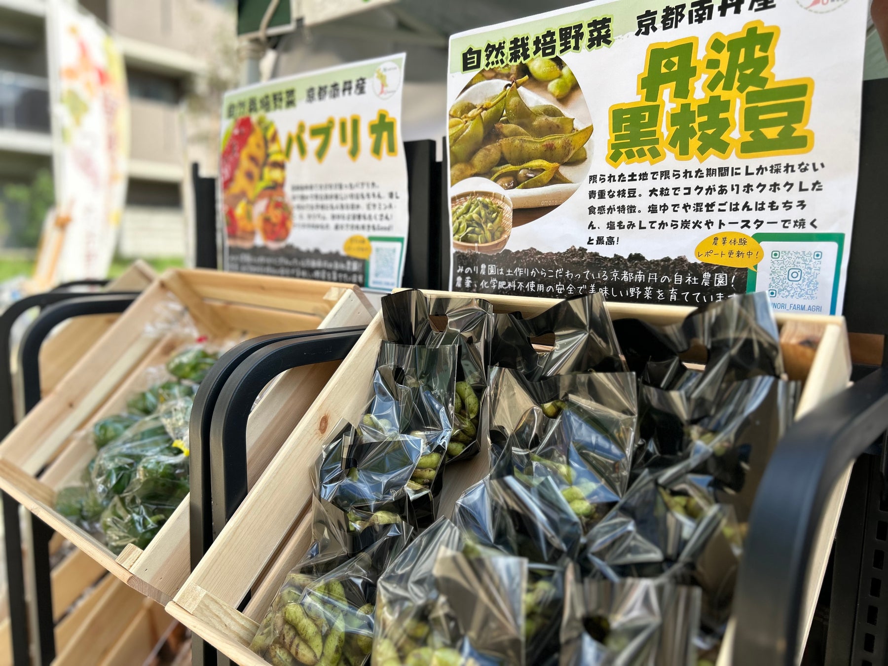 他にも、代表の三谷勇祐が京都・南丹市で運営する自社農園で、地元の農家の方と協力して栽培した農薬不使用の野菜と、地元の農家の方から仕入れた農薬不使用の野菜の両方を、種類豊富に販売しました。