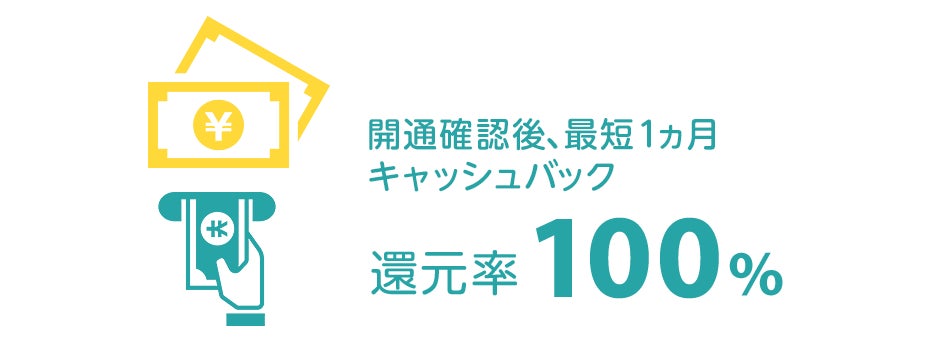 home5Gの開通確認後、キャッシュバック特典を翌月末にお振り込みいたします。最短1ヵ月の早期進呈なのでお客さまからご好評をいただいております。開通したお客さまのキャッシュバック率100%ですので、安心してお申込みください!