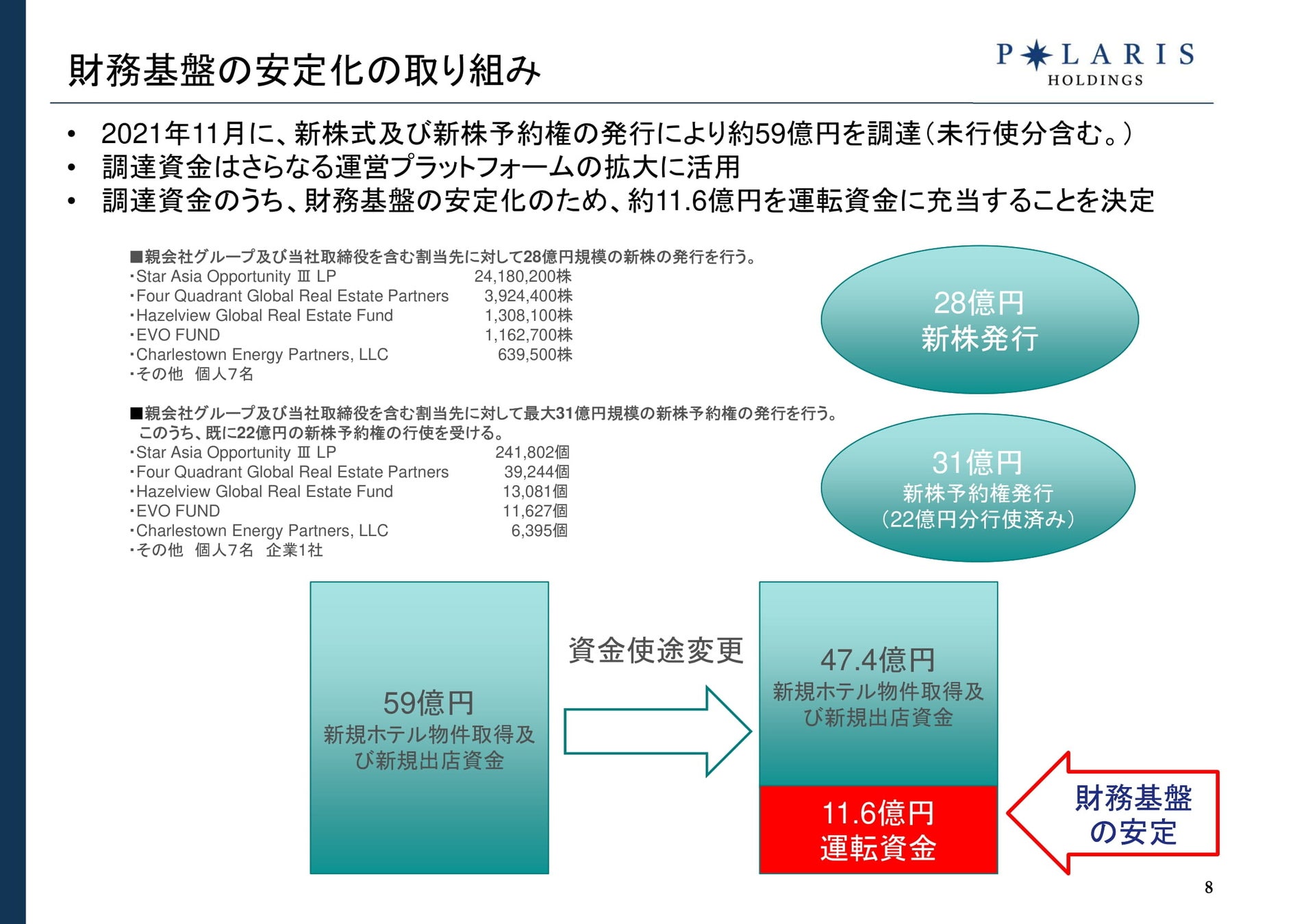 ・調達資金のうち、財務基盤の安定化のため、約11.6 億円を運転資金に充当することを決定