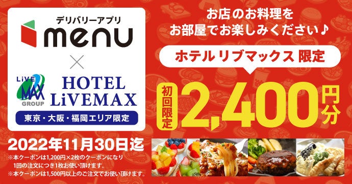 ホテルリブマックス 東京・大阪・福岡エリアの58店舗で、デリバリーアプリ「menu」サービス開始