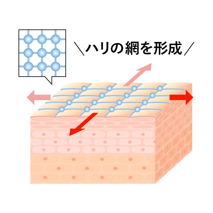 セラミドポリマー※3を配合したことで肌の上でポリマーネットワークを形成し、ハリ・うるおいを与え肌全体をつるんとなめらかに見せることが可能になりました。