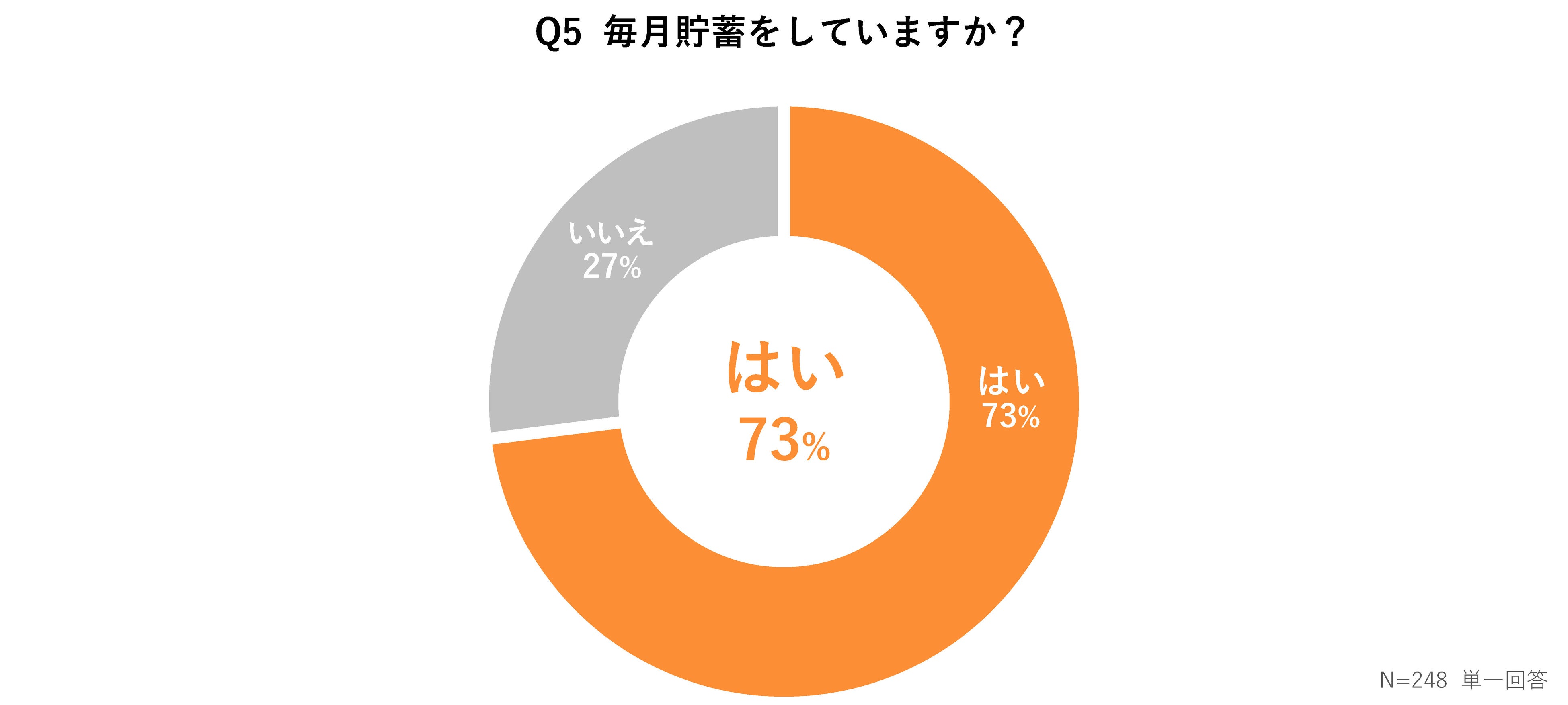 「毎月貯蓄をしていますか?」と質問したところ、「はい」と答えた人が73%という結果となりました。