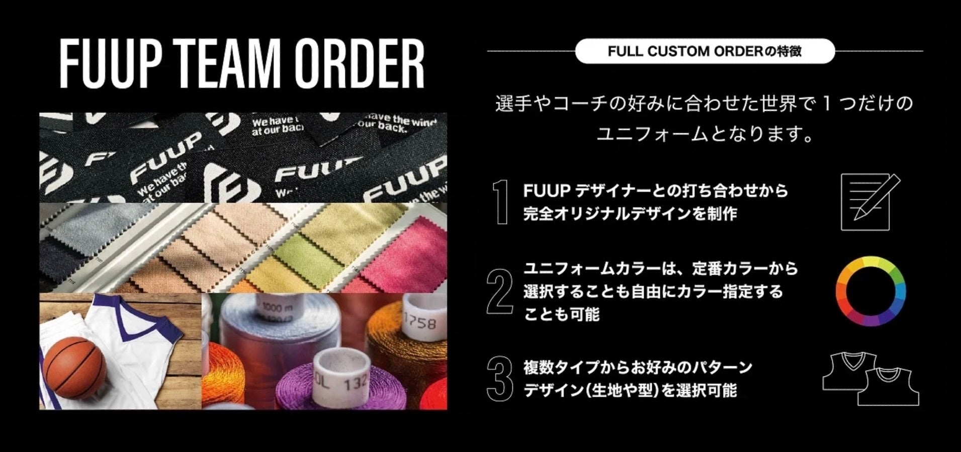 選手やコーチの好みに合わせて、FUUPデザイナーが手掛ける“フルカスタムで世界に一つだけのオーダーメイドウエア”をご提供します。