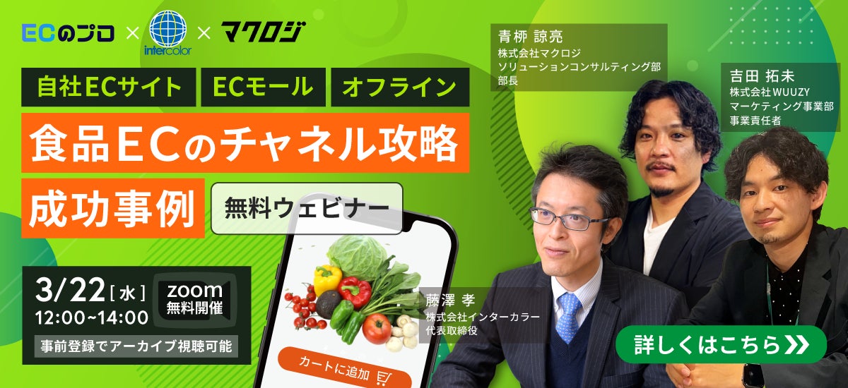 【3月22日(水)12:00 無料ウェビナー】『食品ECのチャネル攻略・成功事例 共有ウェビナー』を開催