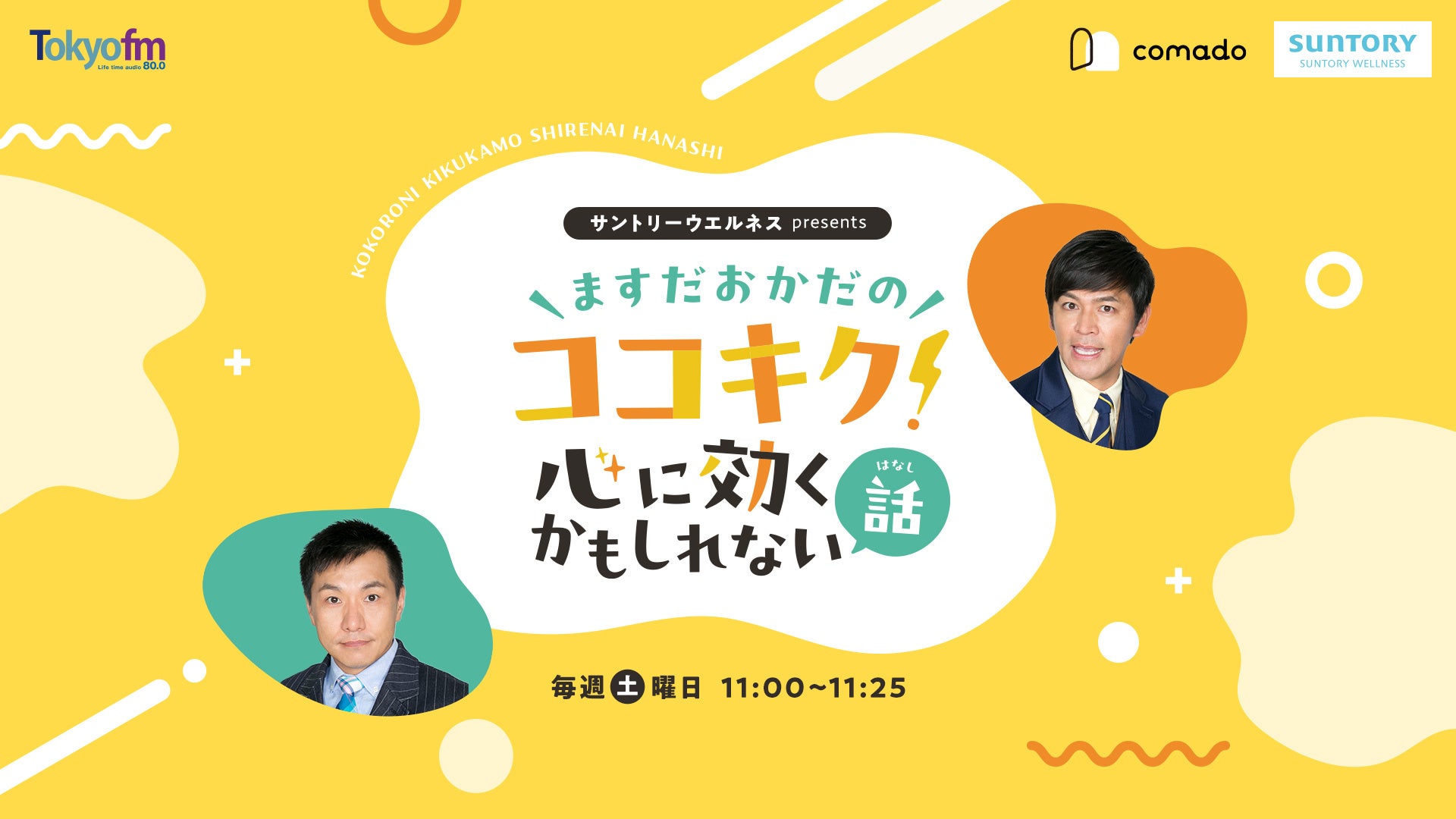 サントリーウエルネス(株)提供のラジオ番組「ますだおかだのココキク!~心に効くかもしれない話~」TOKYO FMで4月5日(土)よりオンエア開始