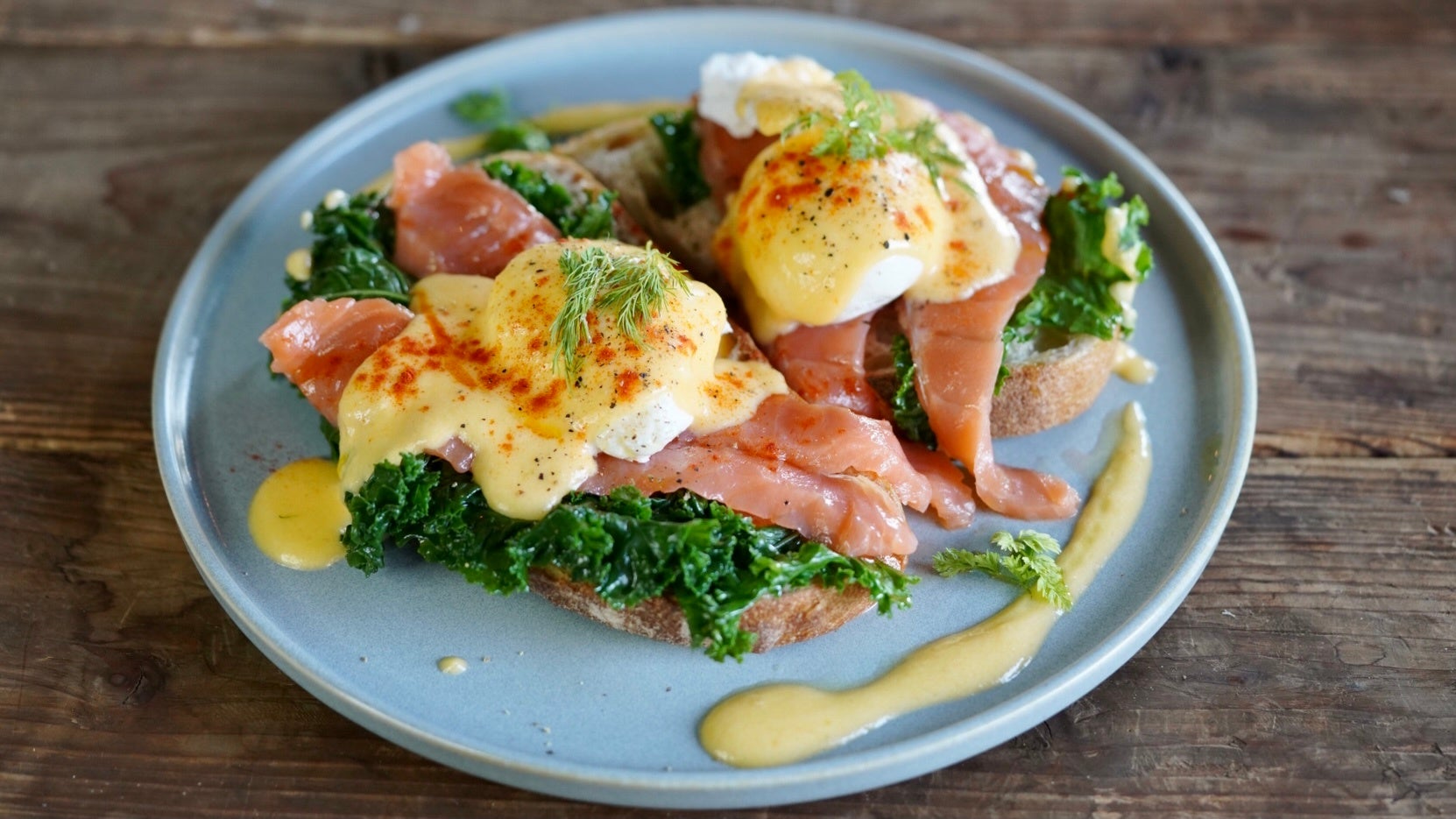 ウッドベリーコーヒーでは、「地球にも体にも優しい」をコンセプトに、オーガニック素材を中心とした、フードメニューをご提供しています。なかでも人気のエッグベネディクトは、ひと口ごとに幸せを感じるような贅沢な一皿。香ばしいケールやとろりとしたポーチドエッグ、濃厚なオランデソースが織りなすバランスは、コーヒーとの相性も抜群です。
