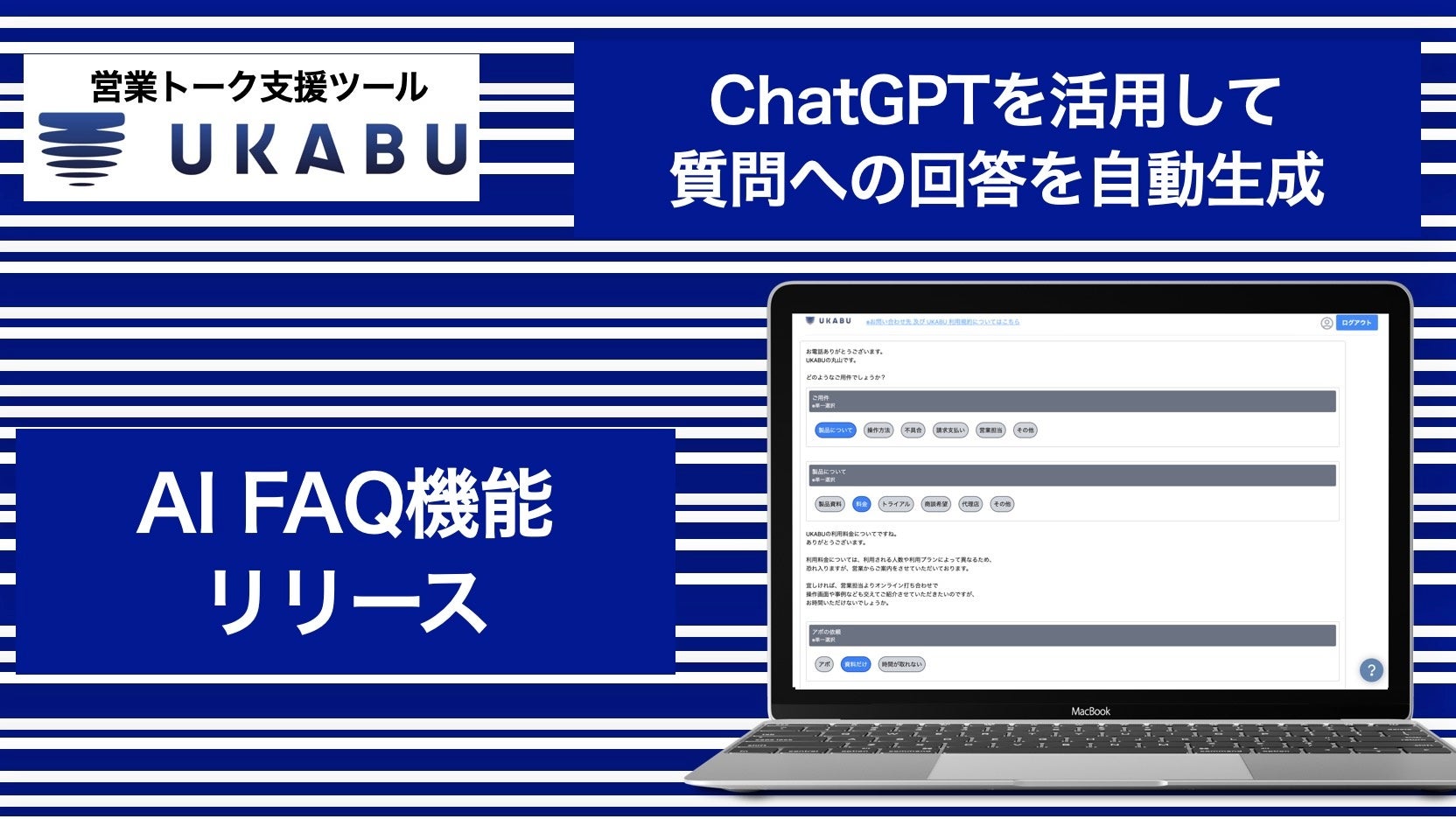 営業トーク支援ツールUKABUに、ChatGPTを活用した「UKABU AI FAQ機能」をリリース!マニュアルのあるURLなどを記載するだけでFAQパターンが作成可能に!