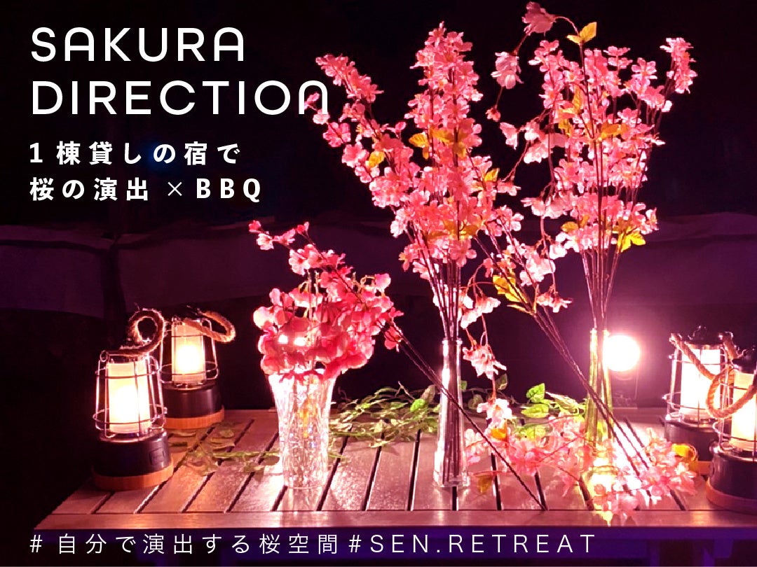 桜の造花や花瓶、ライトアップ用の照明を使って、お客様ご自身でお花見を作り上げるサービスをSEN.RETREATT TAKAHARAで開始しました。照明の当て方を工夫したり、ガラスに映る桜を写真に収めてみたり、あなたなりの楽しみ方をぜひ探してみて下さい。