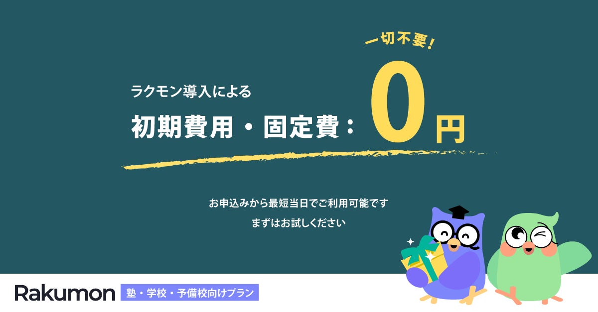 ラクモンでは、無料体験後の導入費や固定費は一切かかりません。初期投資の負担なくサービスを導入いただけるため、企業様は生徒様の学習サポートに専念できます。また、1ヶ月間の無料体験で、ぜひこの便利さと効果を実感してください!
