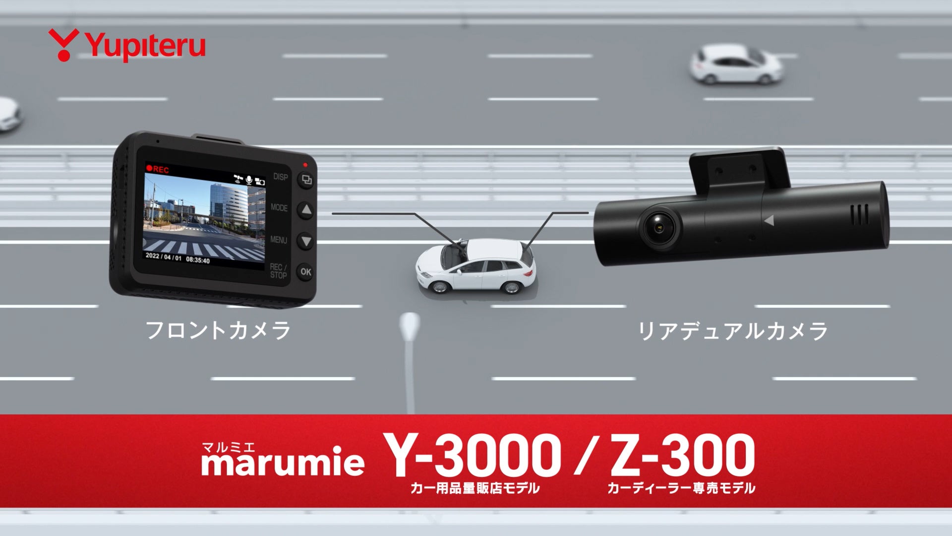 株式会社ユピテル(本社:東京都港区、代表取締役会長 兼CEO:安楽憲彦、以下ユピテル)は、全方面3カメラドライブレコーダー marumie(マルミエ)「Y-3000」「Z-300」の新TV-CM『カウント』篇(15秒)と『画期的3カメラ』篇(15秒)を2022年5月1日(日)から順次全国で放送開始します。