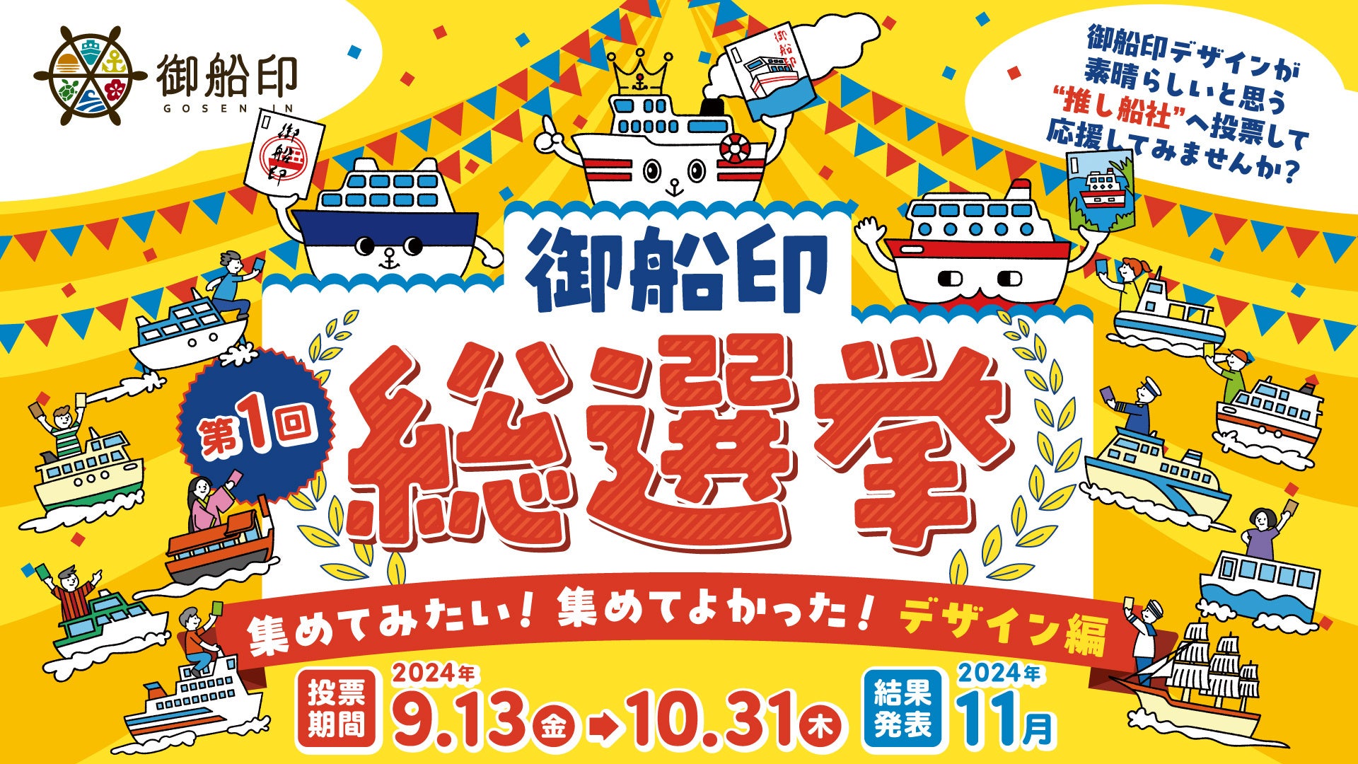 「船の御朱印=御船印」を展開する御船印めぐりプロジェクト事務局(運営:有限会社ディスクマイスター、本社:東京都中央区、以下「事務局」)は、プロジェクト初となる人気投票「第1回 御船印総選挙」を2024年9月13日より開始することをお知らせします。
