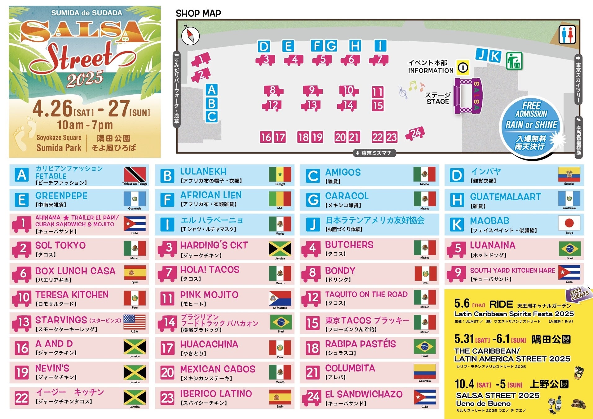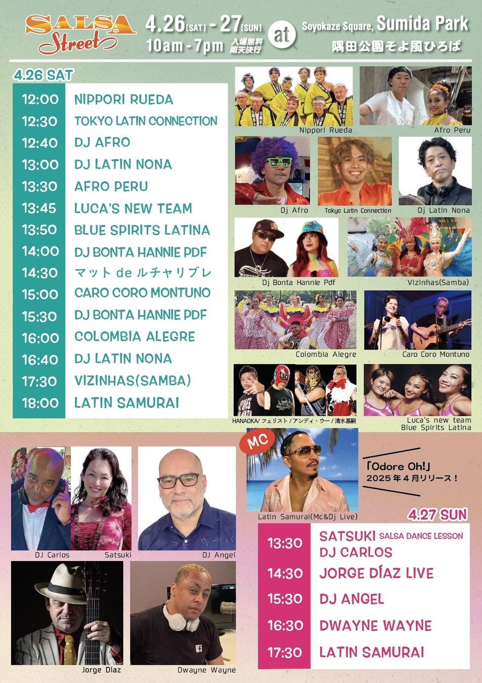 カリブ・ラテンアメリカストリート実行委員会(東京都目黒区 代表 森淳一郎)は、4月26日(土)及び27日(日)に隅田公園そよ風ひろば(東京都墨田区)にて開催する【サルサストリート2025 スミダ デ スダーダ】の詳細を発表いたします。