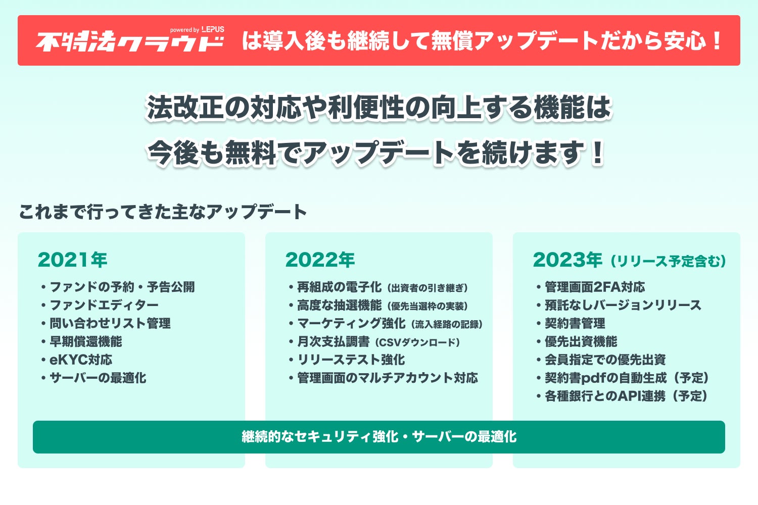 任意の会員を選び事前募集できる優先出資機能や早期償還がパワーアップ。不動産投資型クラウドファンディングシステム「不特法クラウドver1.22」がリリース。