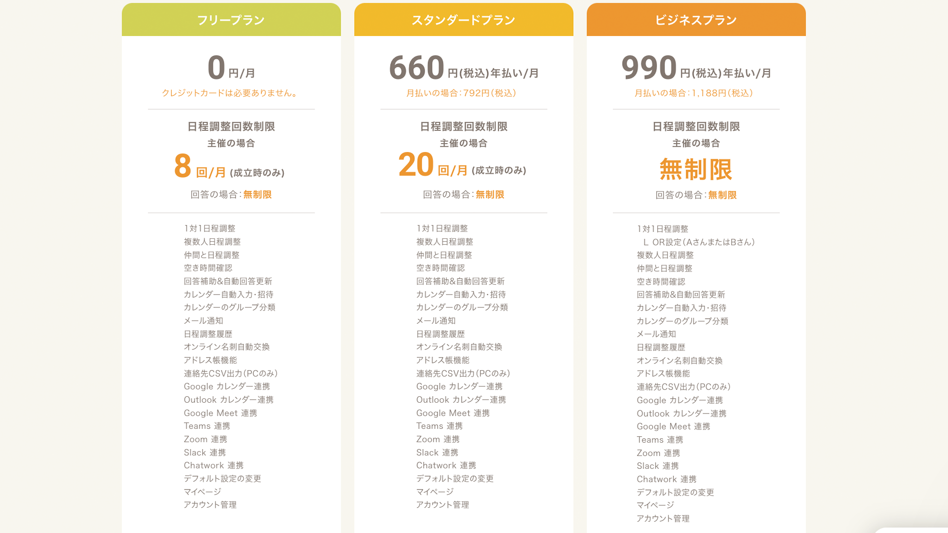 さらに、『Schecon(スケコン)』では、3つの料金プランのうち「フリープラン」「スタンダードプラン」の日程調整回数制限をアップしました!