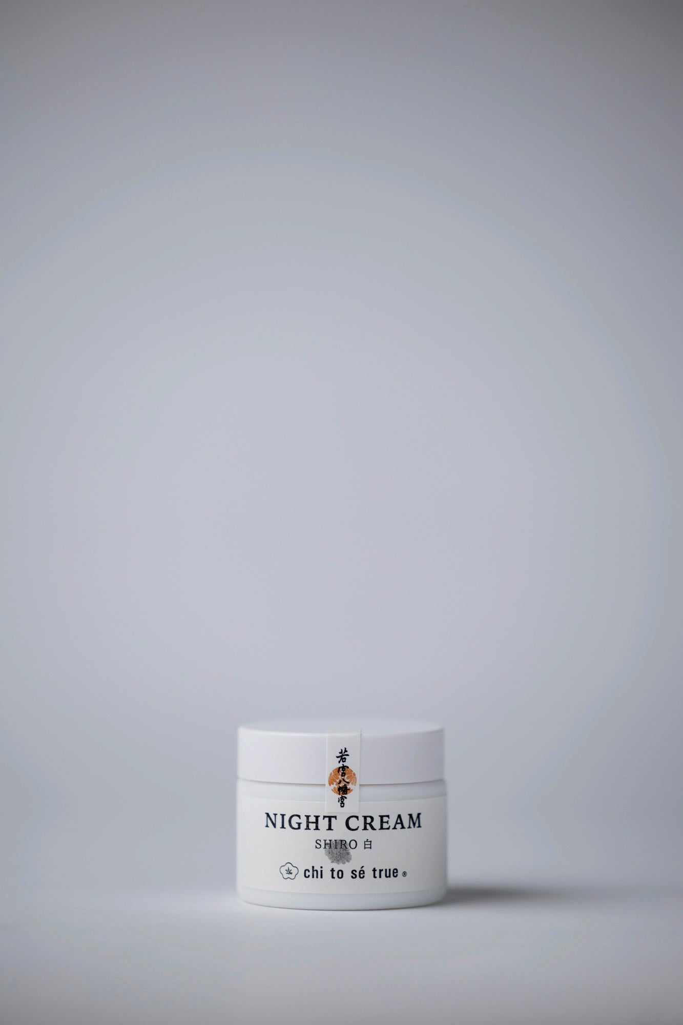 温泉水やコメヌカ発酵エキス、コメヌカ油を配合した潤いを与え保持するナイトクリーム。