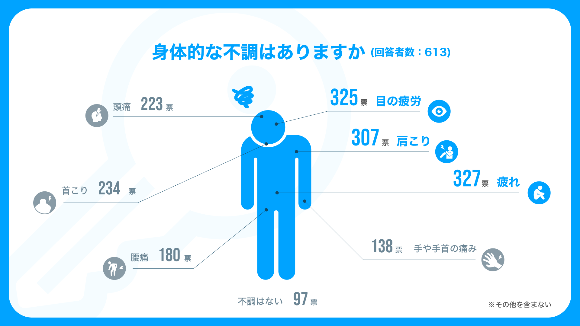 一方でデスクワークの天敵、「腰痛」は約3割という結果に。