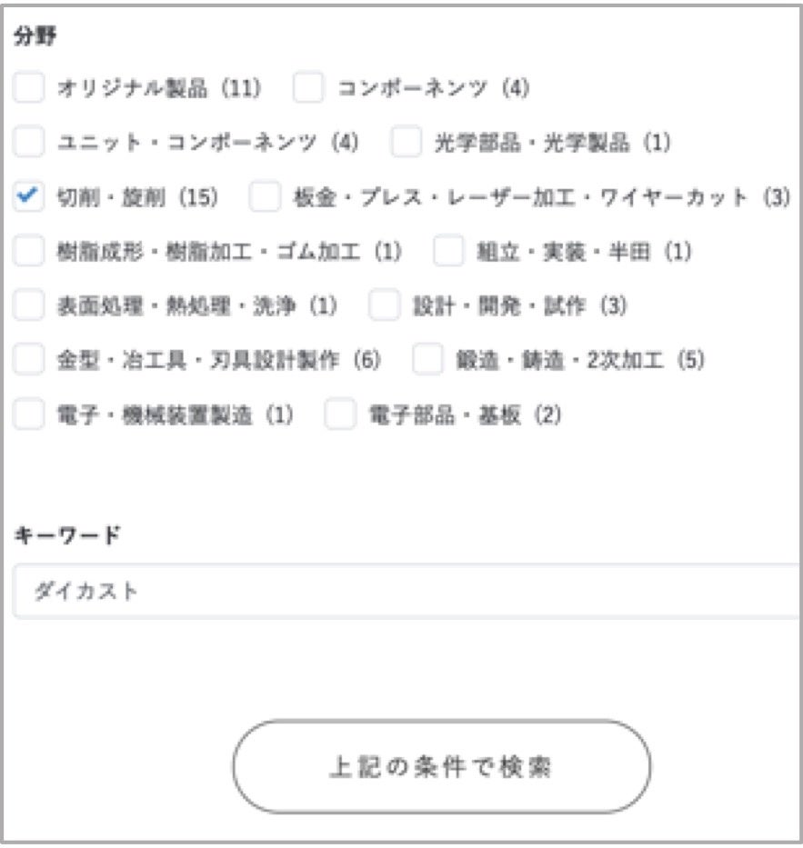 ■分野とキーワードで、富士見町内49の精密機械企業の検索が可能に