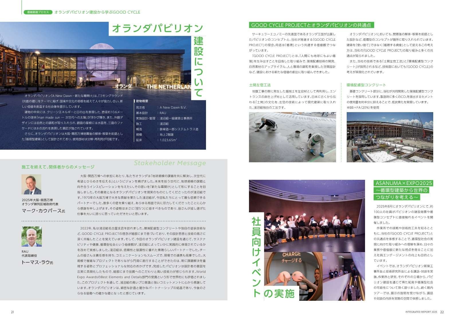 大阪・関西万博で当社が施工した「オランダパビリオン」。その建設を通じて得た学びと、社員が現場で体感した価値を、特集ページ「オランダパビリオン建設から学ぶ GOOD CYCLE」で紹介しています(P.20~)。併せてぜひご一読ください。