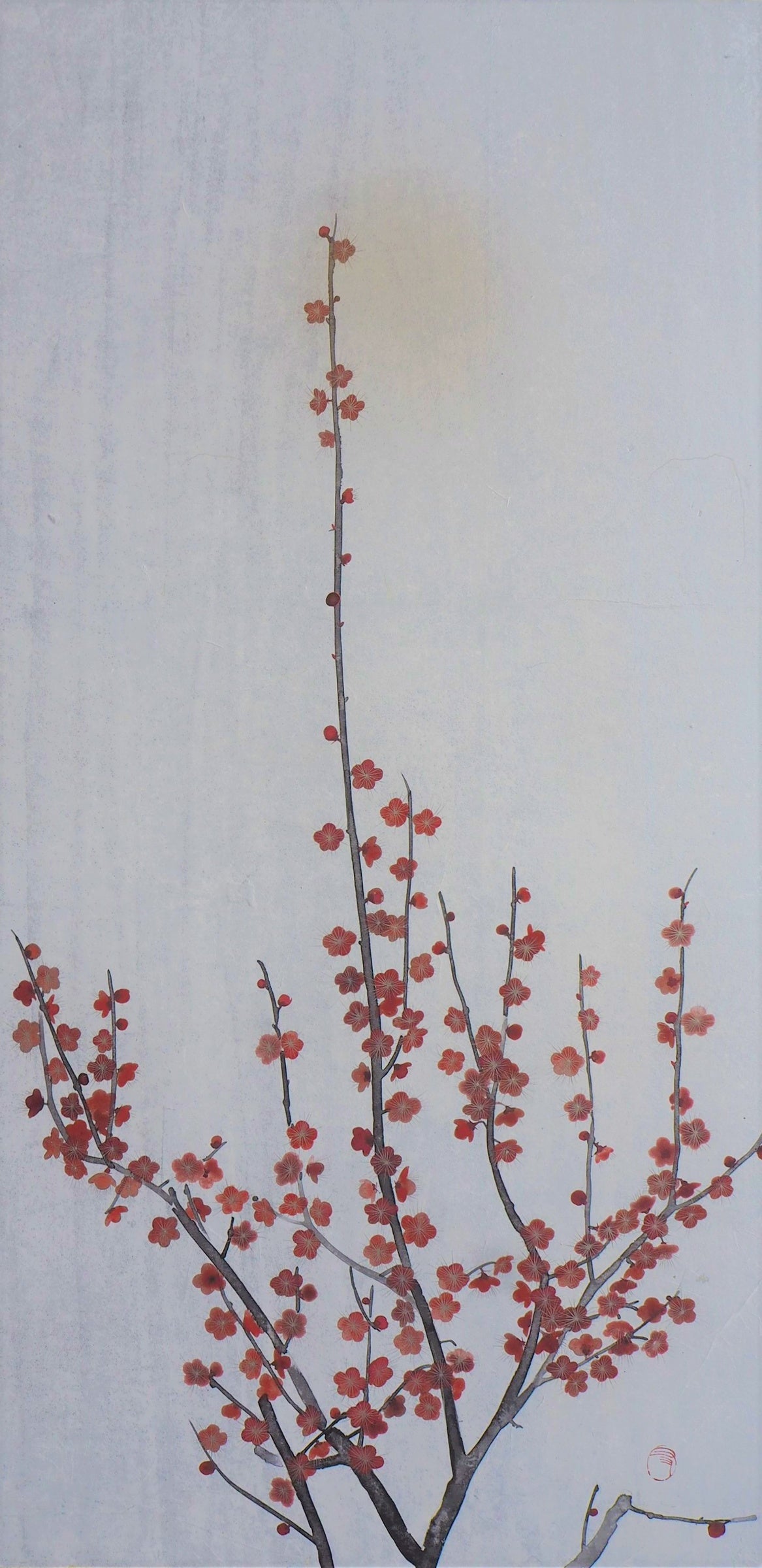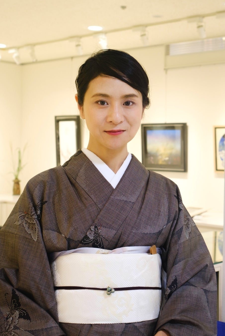 京都の風情あふれる風景や、草花、生き物の姿を日本画の技法で描く。