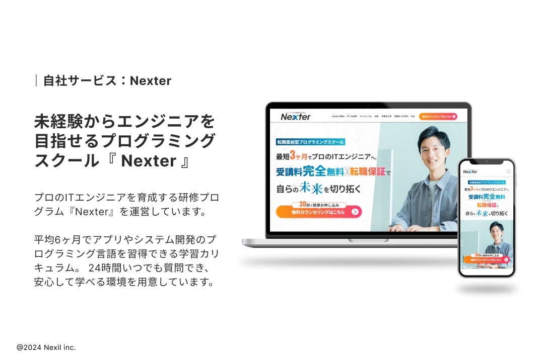 株式会社Nexil (東京都渋谷区、代表取締役:鈴木将吾、以下Nexil) は、オンラインプログラミングスクール『Nexter』をリリースいたしました。