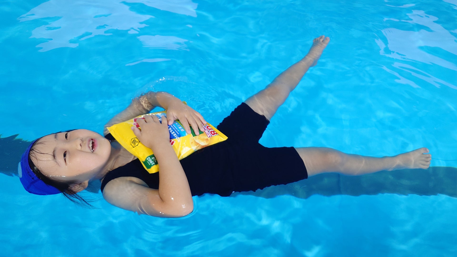 プールでのライフジャケット体験、未開封のポテトチップスの袋を抱え、浮いて救助を待つ練習、流されたサンダルなどのモノは追いかけずにバイバイしてね!というキーワード「サンダルバイバイ」のお話やなど、小学生親子を対象に開催します。