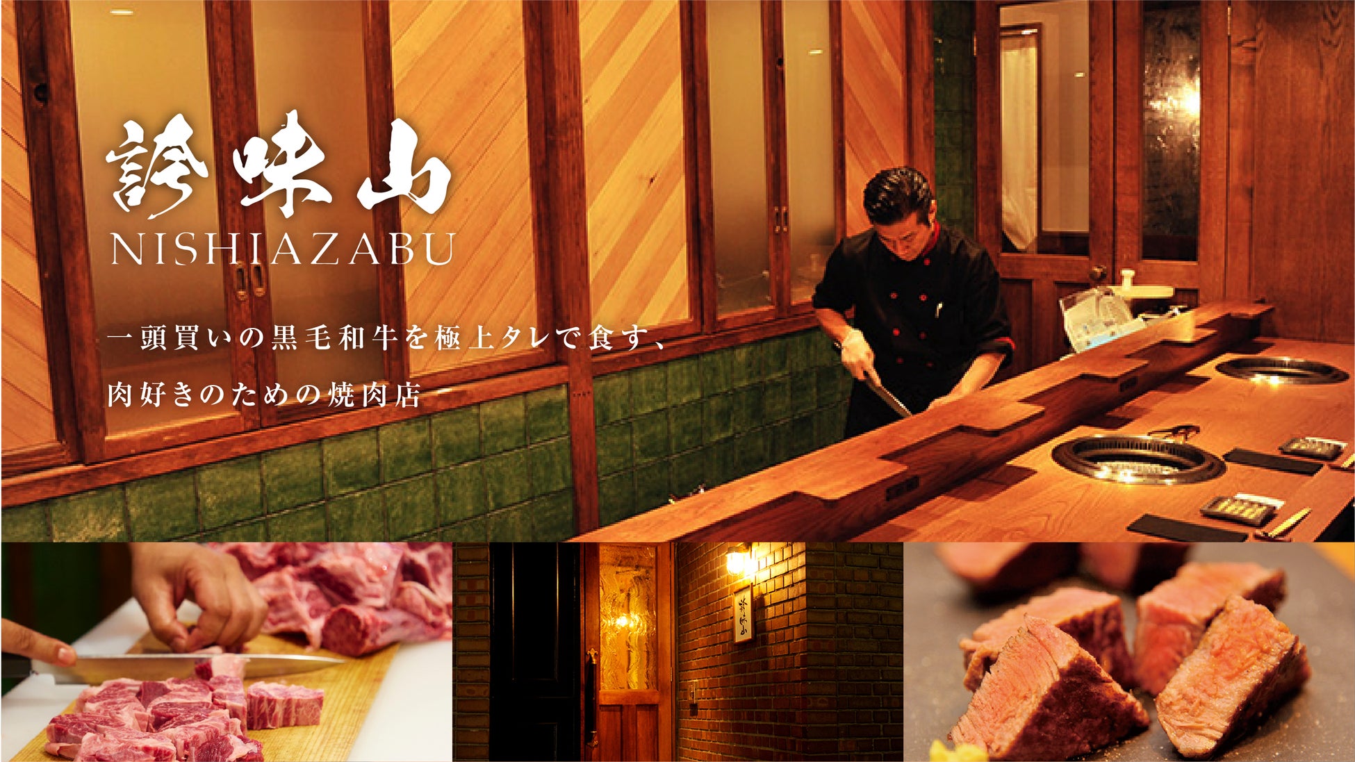 西麻布交差点近く、外苑西通り沿いのビル1階にある『焼肉 誇味山(こみやま)』。肉の買い付けは、店主・込山(こみやま)自らが芝浦の食肉市場へ足を運んで目利きし、A5ランクの黒毛和牛を一頭買い。