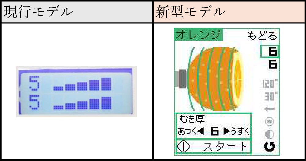 大画面カラーディスプレイで操作が簡単に。新モード搭載で、果物皮むき現場の生産性をさらに向上
