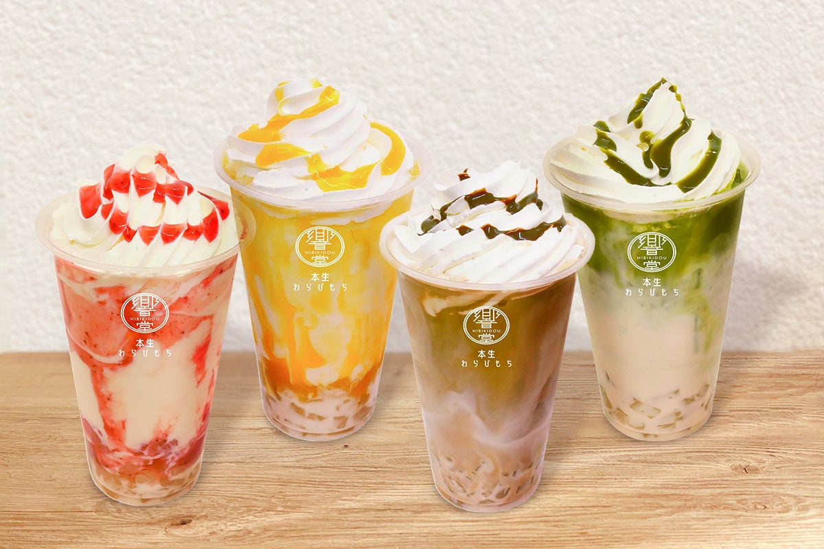 本生わらび餅スイーツを取り扱う和風スイーツ専門店。「響堂」のわらび餅は、愛知県稲沢市の名産で、国産本わらび餅粉を使用した、とろっともちもちの本生わらび餅です。究極まで柔らかさを追求した本生わらび餅は、一口食べればその特別な味わいに感動が広がります。厳選された食材で作る究極本生わらび餅のほか、種類豊富な本生わらび餅ドリンクがお楽しみいただけます。