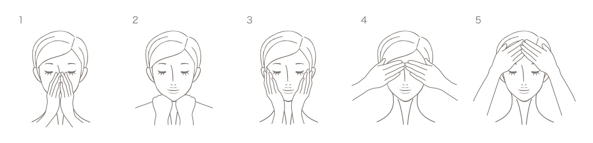 4. 頬骨~目の周りを両手で包み込み、3回深呼吸します。