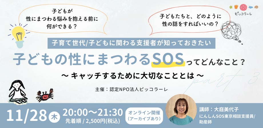 【11/28(木)オンライン開催!】「子どもの性にまつわるSOSってどんなこと?~キャッチするために大切なこととは~」(認定NPO法人ピッコラーレ)