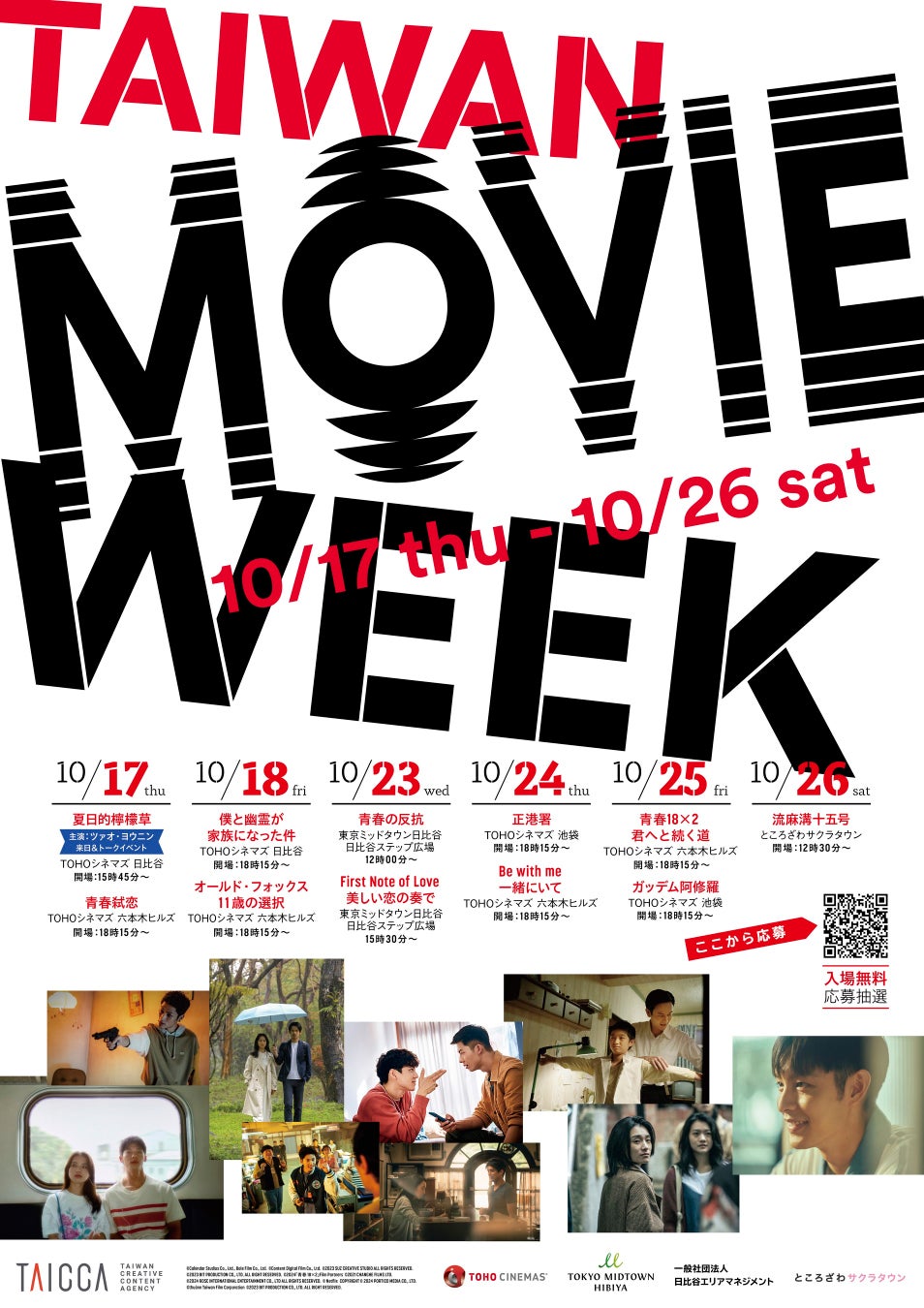 10月17日(木)から10月26日(土)まで、TOHOシネマズ 日比谷、TOHOシネマズ 六本木ヒルズ、東京ミッドタウン日比谷、TOHOシネマズ 池袋で、台湾の人気映画・ドラマ11作を一挙上映する「TAIWAN MOVIE WEEK(台湾映像週間)」が、昨年に引き続き今年も開催!