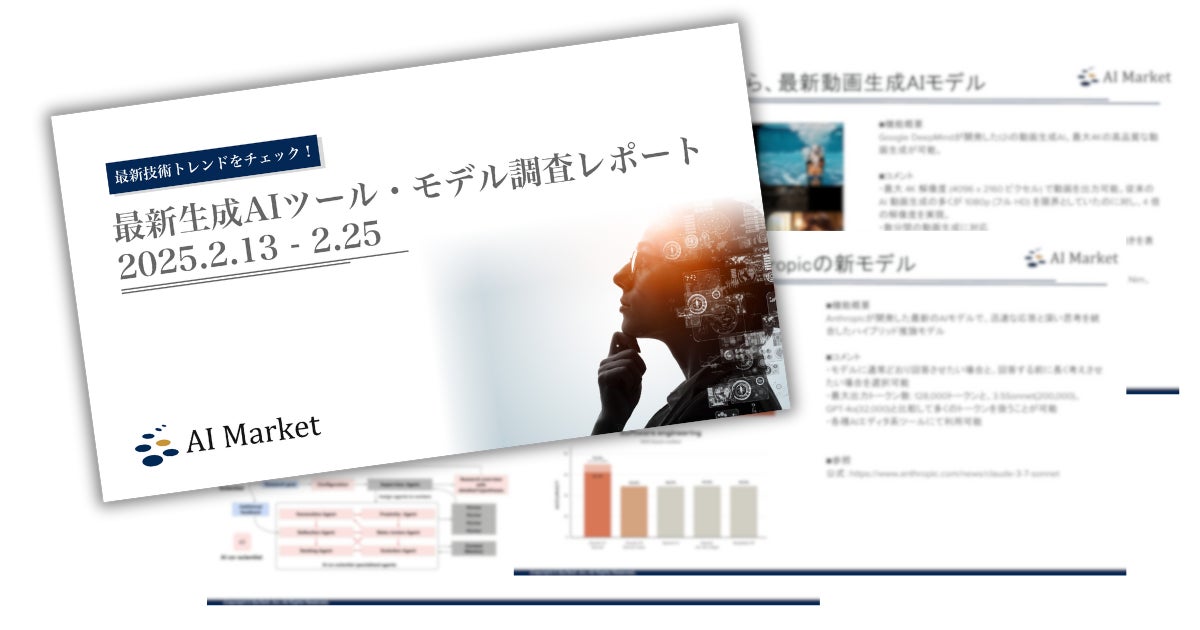 AI Market(https://ai-market.jp)は、2025年2月13日〜2025年2月25日の最新生成AI技術トレンドをまとめたレポートを作成・無料公開致しました。