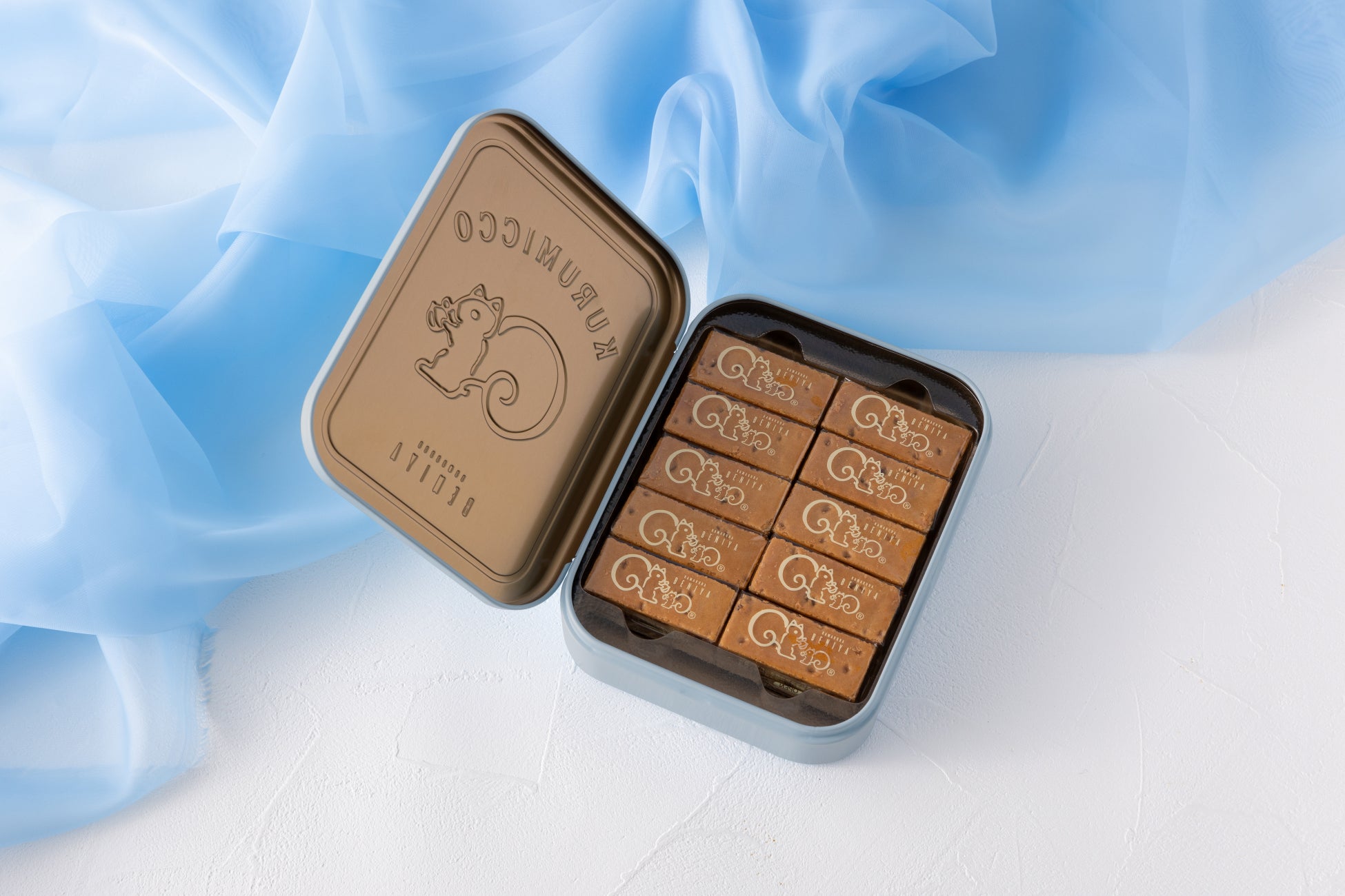 2024年は、爽やかさと優しさを感じる淡いくすみブルーの「クルミッ子10個入(缶)ペールブルー」が登場します。幸せを呼び込む色ともいわれている〈青色〉のリスくんと一緒に、大切な方へ幸せをお届けできたら、という想いを込めて作りました。
