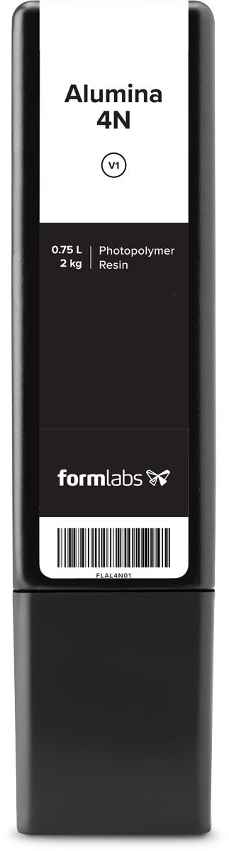 FormlabsのAlumina 4Nレジンは、純度99.99%のアルミナセラミックス部品の3Dプリントを可能にする材料です。バインダー(凝固剤)となる光硬化性レジンにセラミック粉末を充填した材料であるため、本レジンはプリント後にサードパーティ製のオーブンを使って脱脂・焼結を行って仕上げるワークフローとなります。推奨スケジュールとしては、脱脂は最高1,000℃の空気環境で4.5日、焼結は最高1,510℃で2日間が推奨スケジュールとなっています。